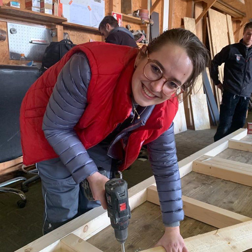 Nach einer Vorstellungsrunde mit Seniorchef Georg Marzell und dessen Sohn Manfred Becker ging es dann für Lara in die Werkstatt. Dort durfte Lara mit der Kreissäge die einzelnen Holzteile zuschneiden und danach mit dem Schrauber verbinden. Kein Problem für Lara. Sie hatte ja auch die ganze Zeit Unterstützung von Geselle Pascal und Azubi Max.